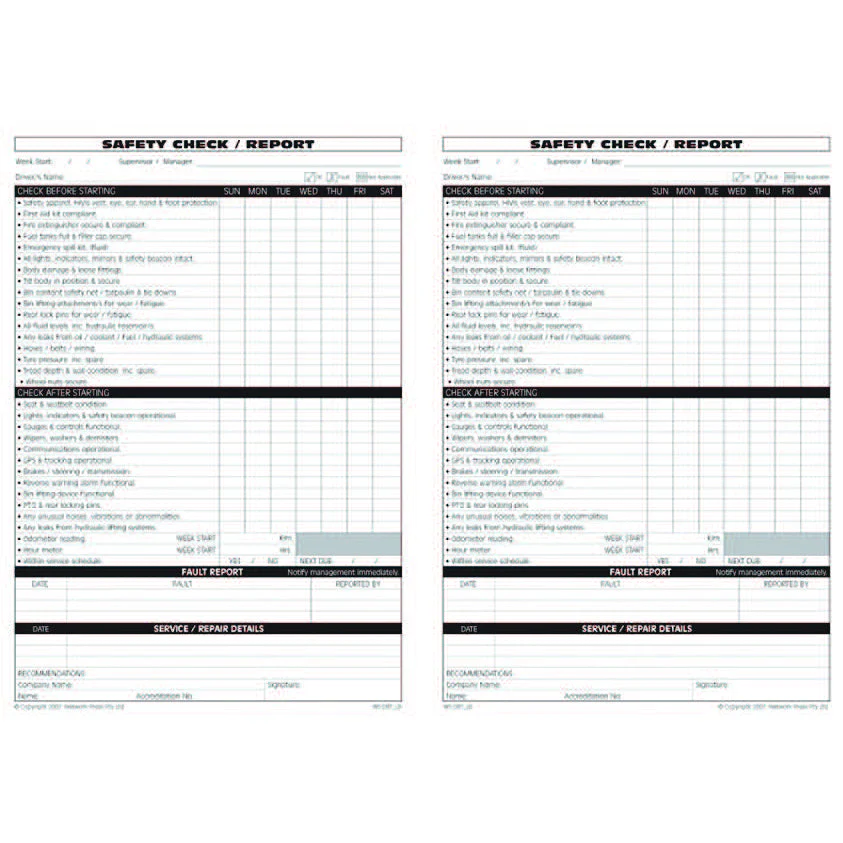 Ensure your workers are staying safe, machinery works effectively is being maintained and services recorded with our pre start checklist logbooks.