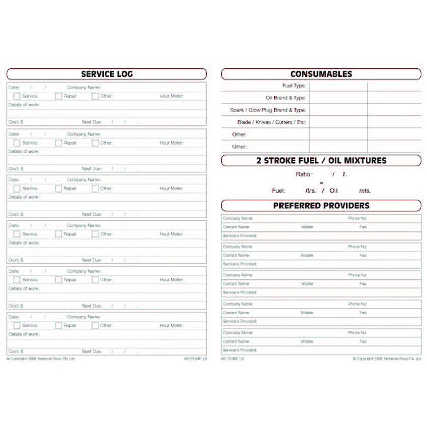 Stump Grinders Safety Pre Start Checklist and Maintenance Logbook